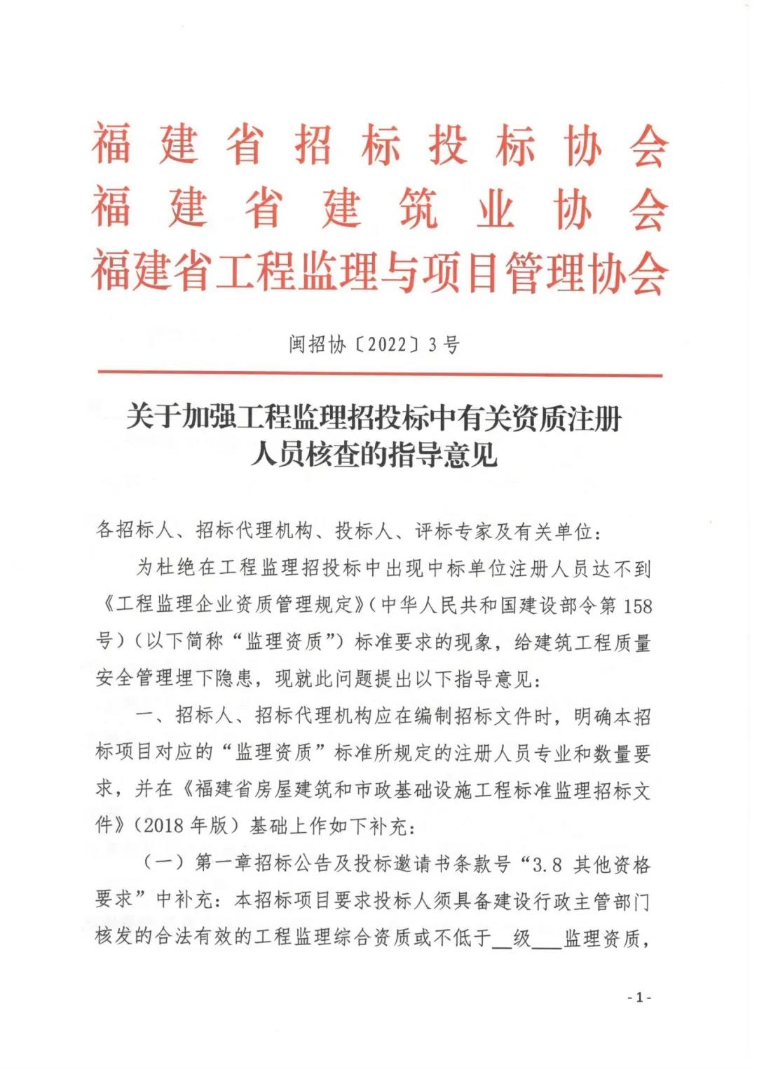监理资质注册人员不达标,将给未来建设工程项目实施埋下隐患。日前,福建省招标投标协会、福建省建筑业协会、悟空手机官方网站联合印发指导意见。意见提出,招标人在招标文件中明确设置对投标人的资质及注册人员要求、评标委员会在评标环节增加资质注册人员核查、投标人在投标文件中增加资质注册人员达标承诺。通过环环相扣的三方面措施,坚决杜绝监理资质注册人员不达标的投标人成为中标候选人。