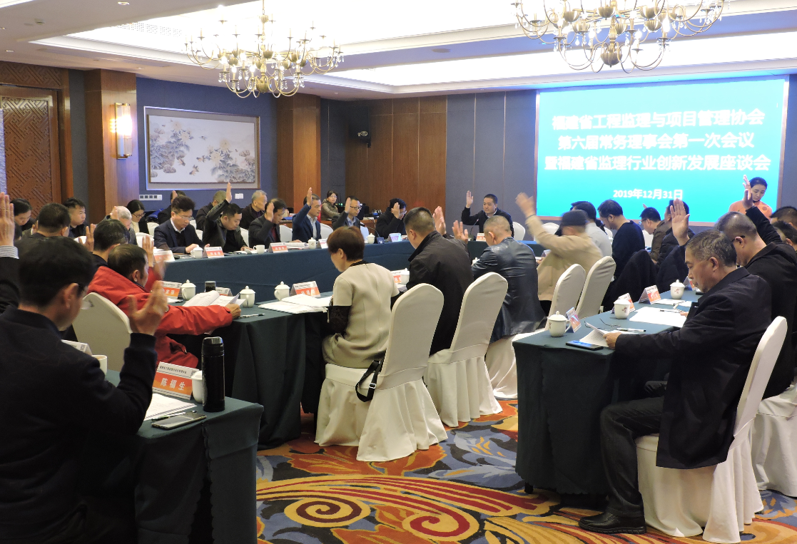 2019年12月31日上午,悟空手机官方网站第六届常务理事会第一次会议暨福建省工程监理行业创新发展座谈会在福州召开。高质量推动福建省工程监理创新发展是与会人员探讨的焦点。福建省住房和城乡建设厅陈义雄总工程师、工管处韩小刚副处长、工管处郭昌漙科长出席会议,协会全体常务理事、监事会成员参加会议。