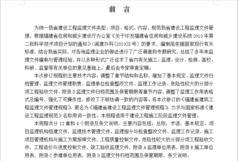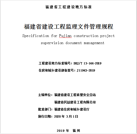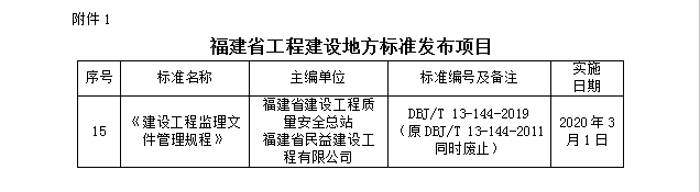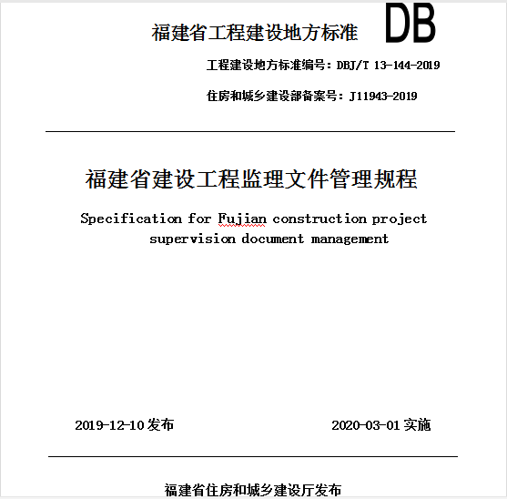省住房和城乡建设厅发布的《福建省建设工程监理文件管理规程》