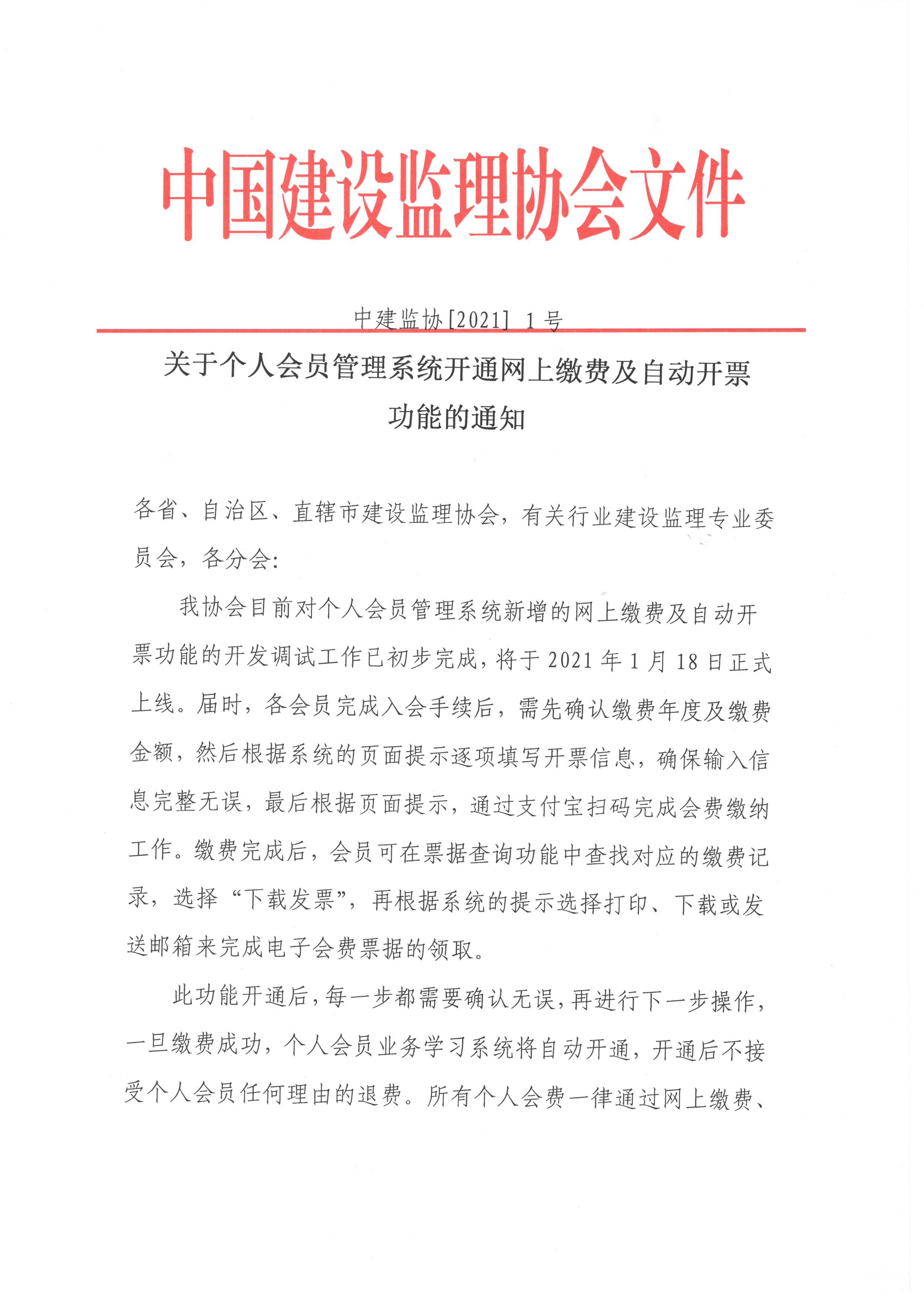 转发中国建设监理协会《悟空手机官方网站个人会员管理系统开通网上缴费及自动开票功能的通知》