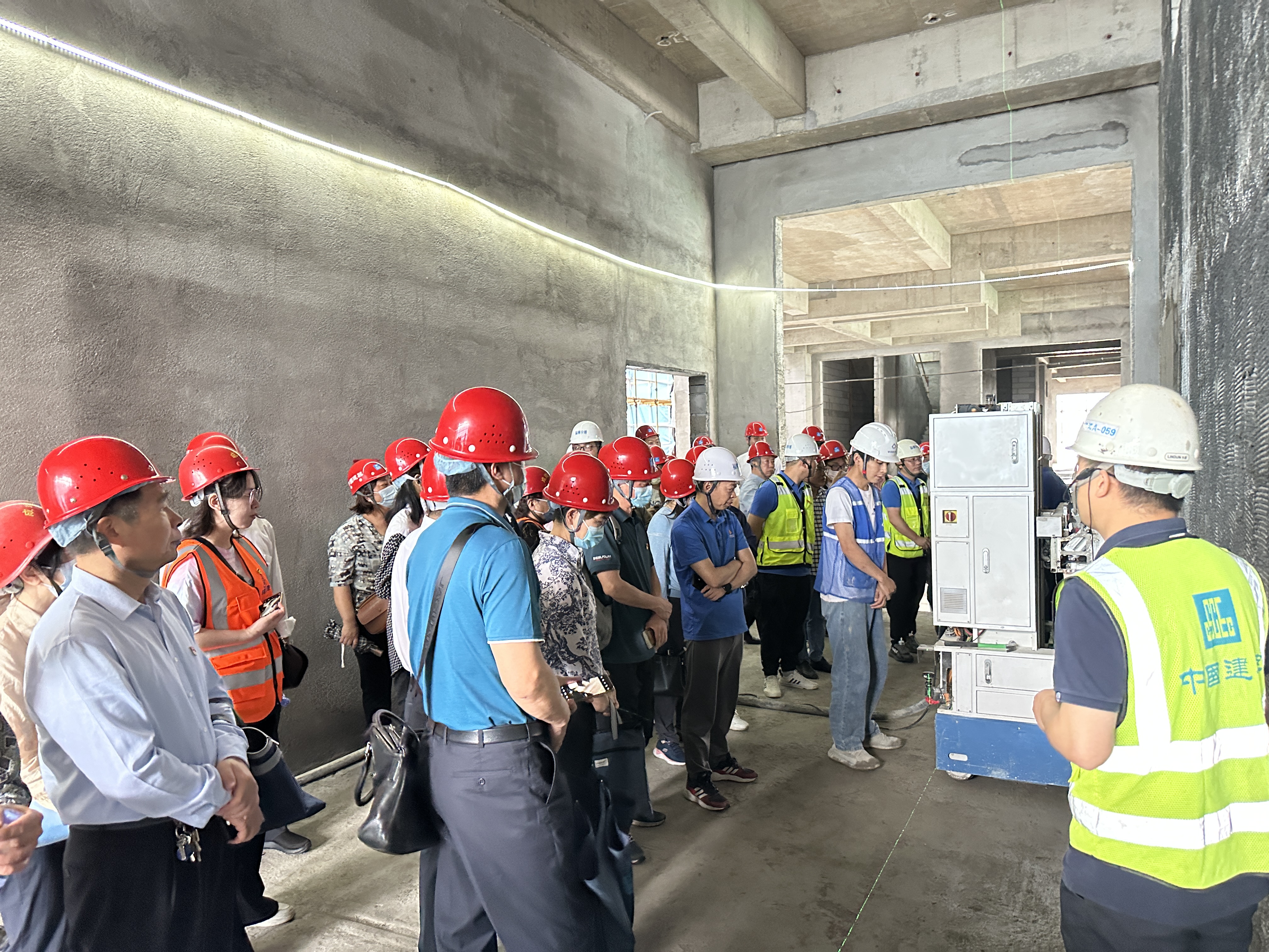 会前,悟空手机官方网站精心组织与会党支部书记参观了福耀科技大学(暂名)项目建设工地。一进入项目现场,一座座建筑主体已完成封顶,施工现场井然有序、干净整洁,俨然一副“静谧平和”的景象,绿色施工的理念在这里展现得淋漓尽致。大家不仅参观了项目建设工地的智慧建设实验室、党建活动室等,还深入施工现场实地领略了智能机器人施工,纷纷感叹人工智能时代的先进性。