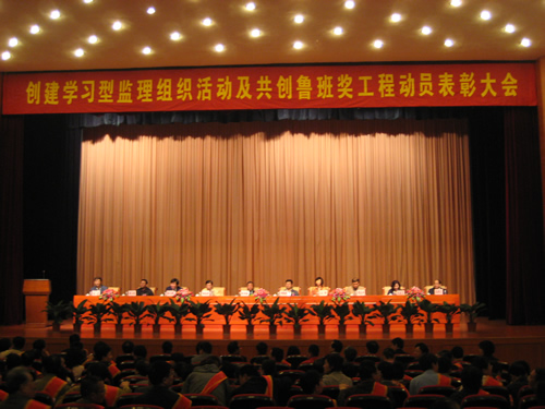 2009年4月8日,创建学习型监理组织活动及共创鲁班奖工程动员表彰大会在广州召开。住房和城乡建设部、中国建设监理协会、广东省建设厅、各省市建设监理协会、专业监理协会领导及各获奖企业代表参加了会议。会上表彰了共创2008年度鲁班奖工程的92家监理企业和107名总监理工程师。住房和城乡建设部建筑市场监管司建设咨询监理处江华处长受王素卿司长委托,在会上讲话并介绍了2009年推进工程监理行业发展的五点措施。中国建设监理协会张青林会长在会上全面阐述了什么是学习型监理组织,创建的目标和任务。 会后,与会代表还参观了广州新客运火车站等工程项目。